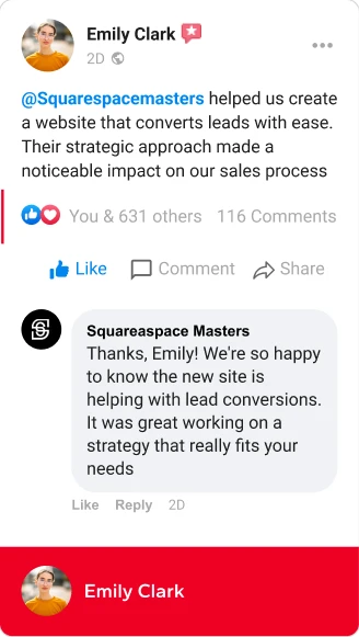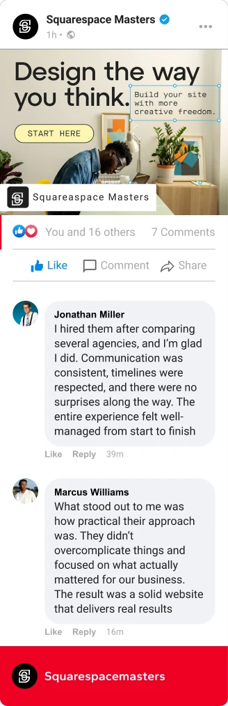 Your website should feel like your brand, not a recycled template. Our Squarespace designers create custom websites that are easy to use, visually clear, and built around your business goals. Everything is designed with intention, from layout to content flow.